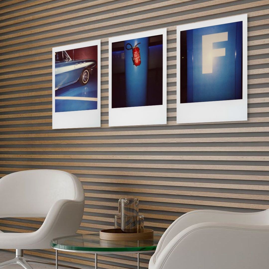 The height of each print is consistent, ensuring perfect alignment when installed side by side. Very minor variations in width may occur, reflecting the original proportions of the Polaroid.